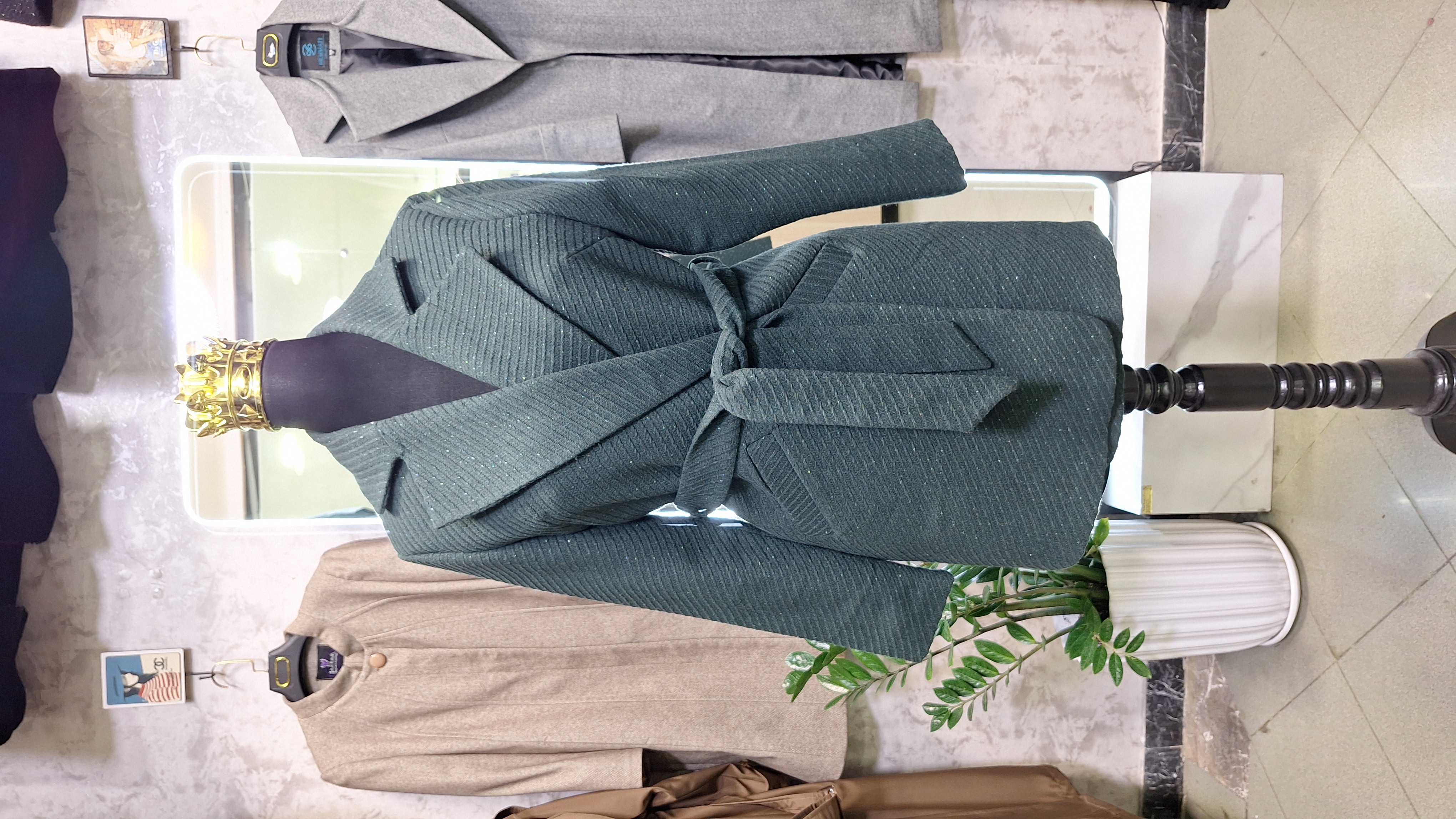 درخشش و گرمای زمستان را با کت فوتر کجراه لمه تجربه کنید. این محصول با استفاده از پارچه فوتر باکیفیت تولید شده که بافت کجراه آن به همراه تار و پودهای ظریف لمه، جلوهای نیمهمجلسی و بسیار خاص به لباس بخشیده است. وجود لمه در بافت پارچه باعث میشود که کت در نور، درخشش ملایم و جذابی داشته باشد که آن را از مدلهای ساده فوتر متمایز میکند.